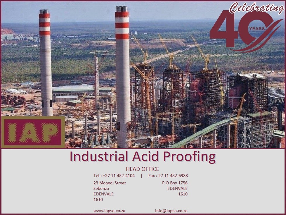 Industrial Acid Proofing have been the leaders in corrosion and surface protection since 1982. Industrial Acid Proofing (Pty) Ltd, registered in 1982 operates together with IAP International (Pty) Ltd formed in 2004 due to the large scale of cross border contracts. The Directors and Management have been in the industry of corrosion protection for in excess of 100 years. IAP’s Head Office operates from Johannesburg SOUTH AFRICA, with branches in Namibia, Zambia and Mauritius.